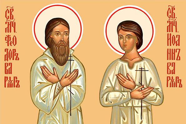 Ytterligare ett viktig väringainslag i den tidiga ryska kristna historien finns i Nestorskrönikans berättelse om en väringakrigare som efter att ha döpts under militärtjänstgöring i Konstantinopel kom att bli, tillsammans med sin son, de första martyrerna på rysk mark. Kända som de heliga Fjodor (Theodor) och Ioann (Johannes) (d. 983) i hagiografisk tradition, dödades denna far och son intressant nog under den tid då helige Vladimir den Store, Rus’ döpare, fortfarande var hedning. Helige Vladimir byggde sedermera en kyrka till Guds Moders avsomnades ära på platsen där heliga Theodor och Johannes lett martyrdöden.
